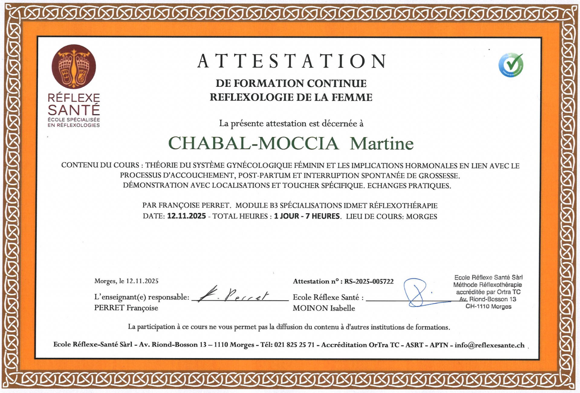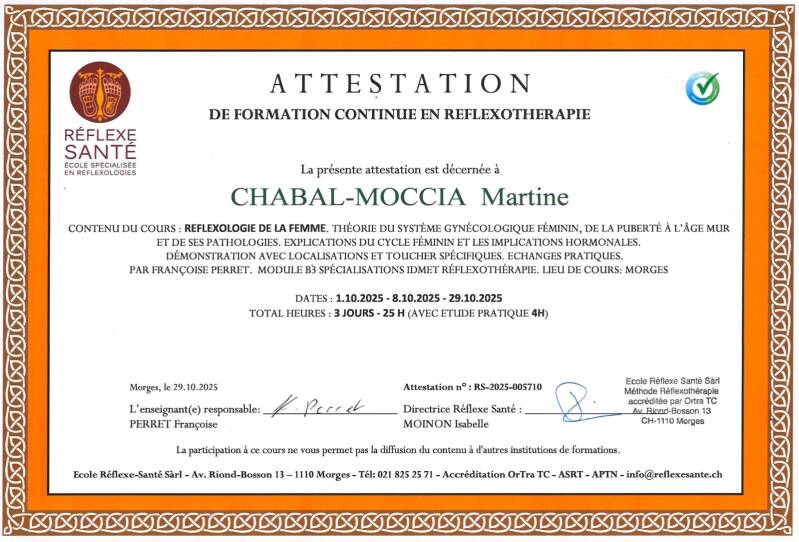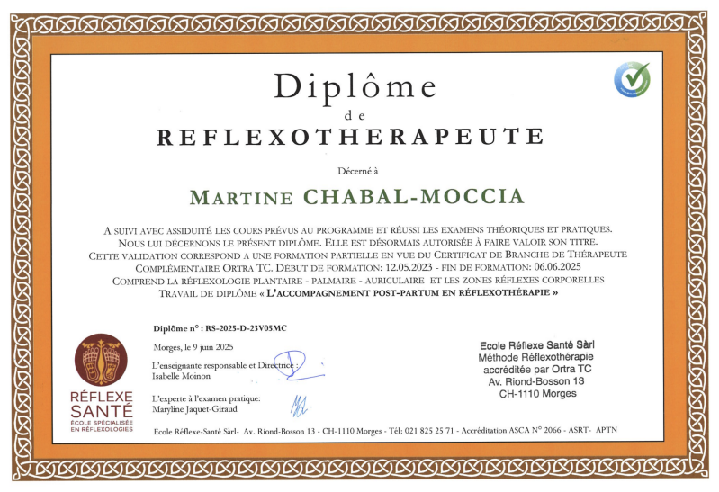 Diplôme de Réflexothérapeute (plantaire & globale)